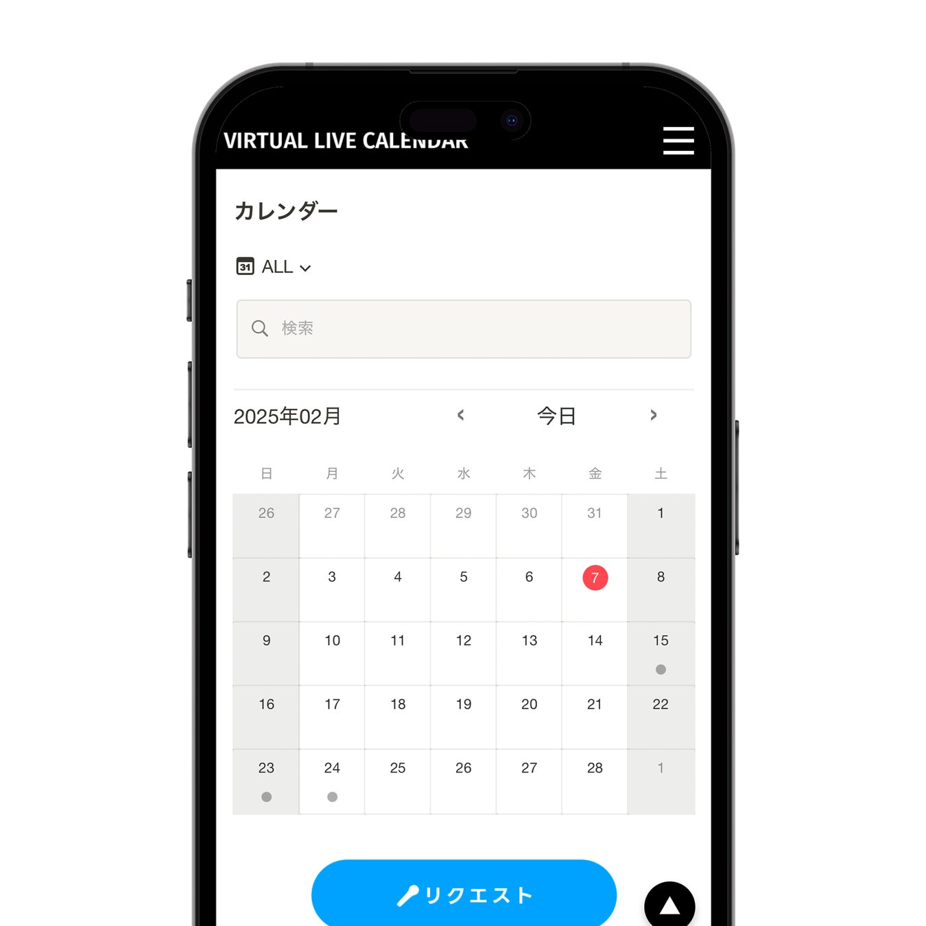1ヶ月ごとのカレンダービューから各イベントの開催情報にアクセスできます。イベントへ遊びに行きたい日程で開催するライブ・イベント情報を素早く検索できます。