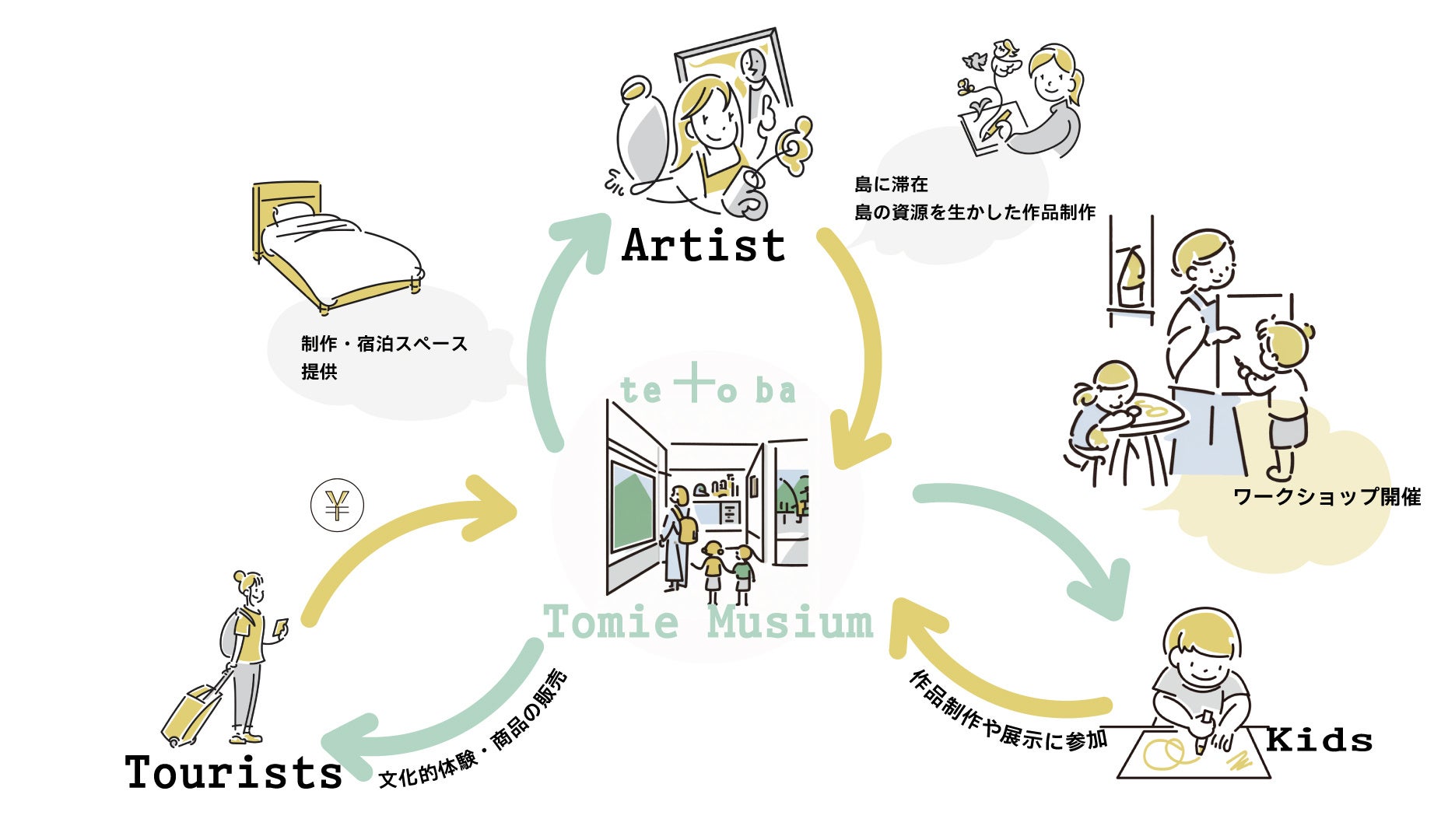 てとば美術館は、ただ作品を展示する場ではなく、アーティストが滞在し、五島を表現する場所 になります。この場所が、人々の記憶を記録し、未来へとつなぐ場になればと考えています。