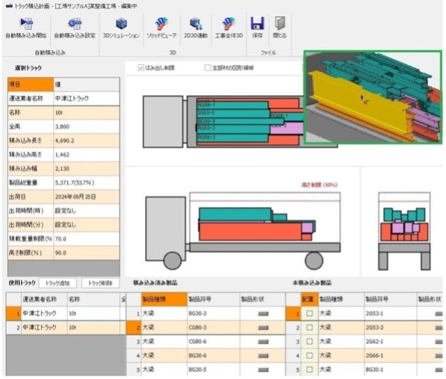 鉄骨専用CADシステムと連動し、トラック手配から3Dでの積込シミュレーションまで可能な、3Dで鋼材の積載を確認できるソフトウェア【S/F出荷計画】の提供を開始