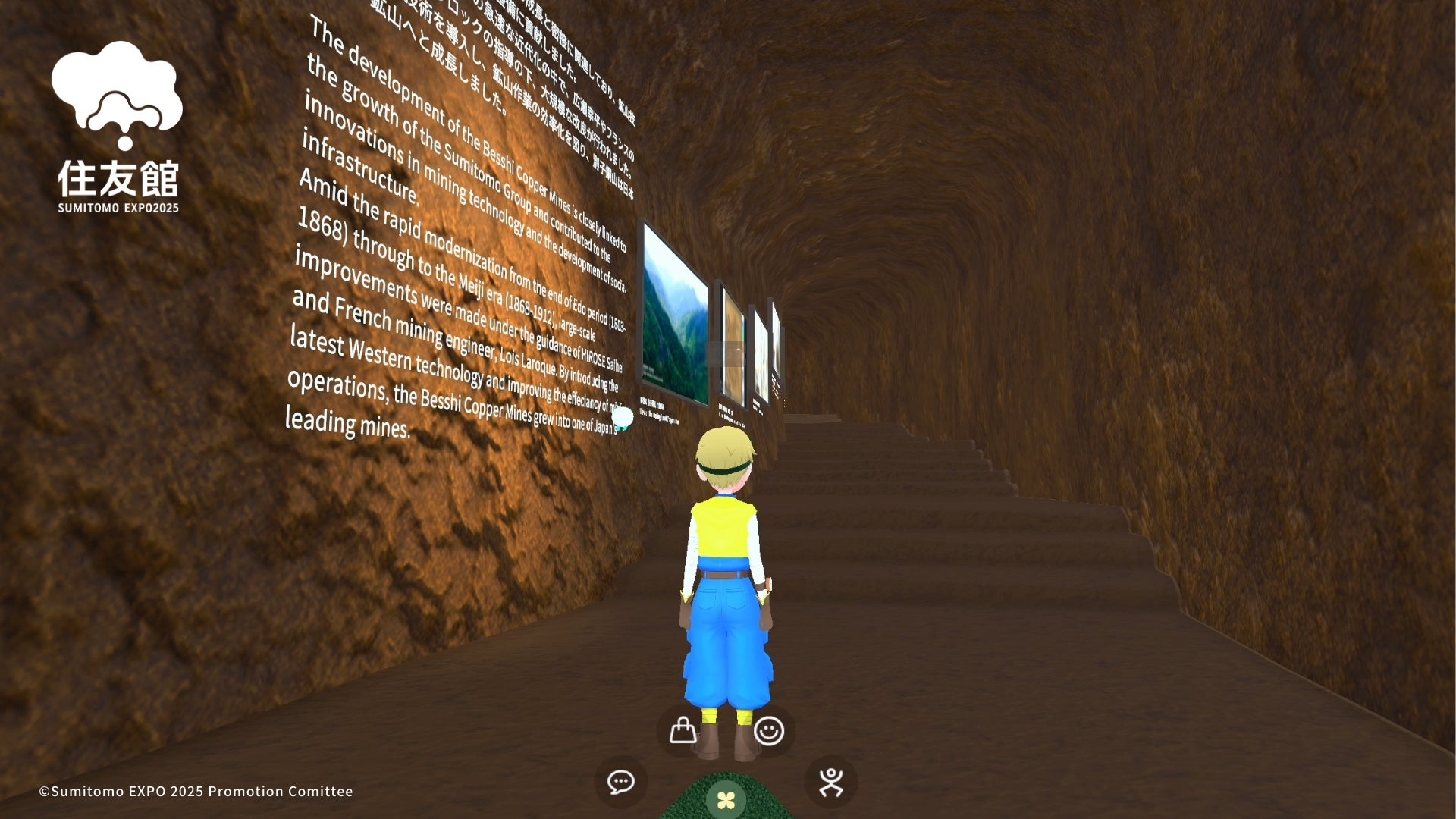 バーチャル住友館は、住友グループの約400年にわたる歴史と、未来への挑戦を体感できるデジタル空間です。住友館のシンボルマークをモチーフにした木々が立ち並ぶ森を探検する体験、住友グループ発展の礎となった“別子銅山”の坑道をモチーフにした洞窟で別子銅山の歴史に触れる体験、未来を切り開く数え切れないアイデアとの遭遇など、さまざまなコンテンツがバーチャル住友館では待ち受けています。そして、バーチャル住友館での体験を通して、人と自然の共生、社会課題への取り組み、そして未来への気づきや学びを提供します。