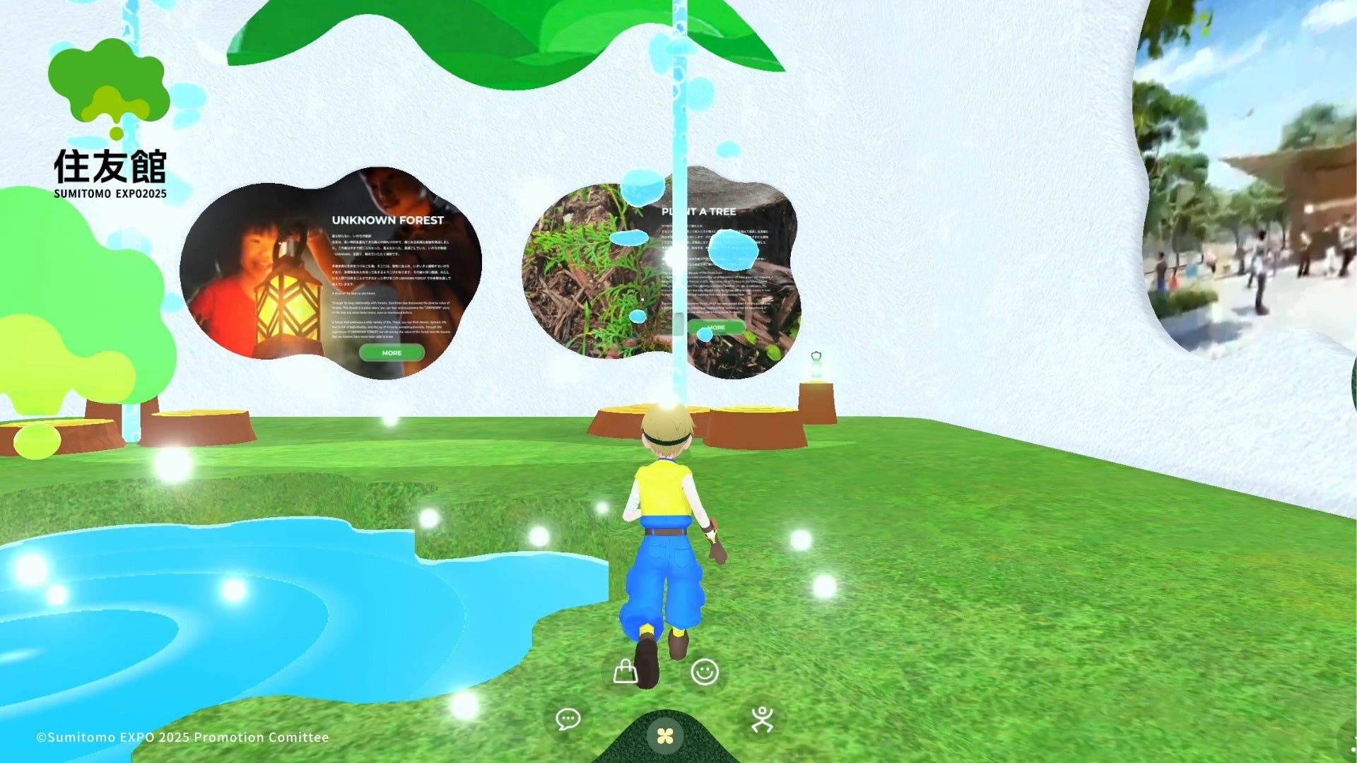 森に踏み込んだ瞬間のワクワクやドキドキは、世代や国籍を超えて多くの人が味わったことのある感覚だと思います。ワクワクは人の心を動かし、まわりの世界へ広がっていく力を持っています。バーチャル住友館では、そんな心地よさや、もっと奥へ誘われるような空気感をそのままワールドに表現し、過去から未来へと続く様々な発見に出会える体験をバーチャルで楽しむことができます。 “森”から学び、住友との出会いを通じて未来を描くきっかけになれば幸いです。