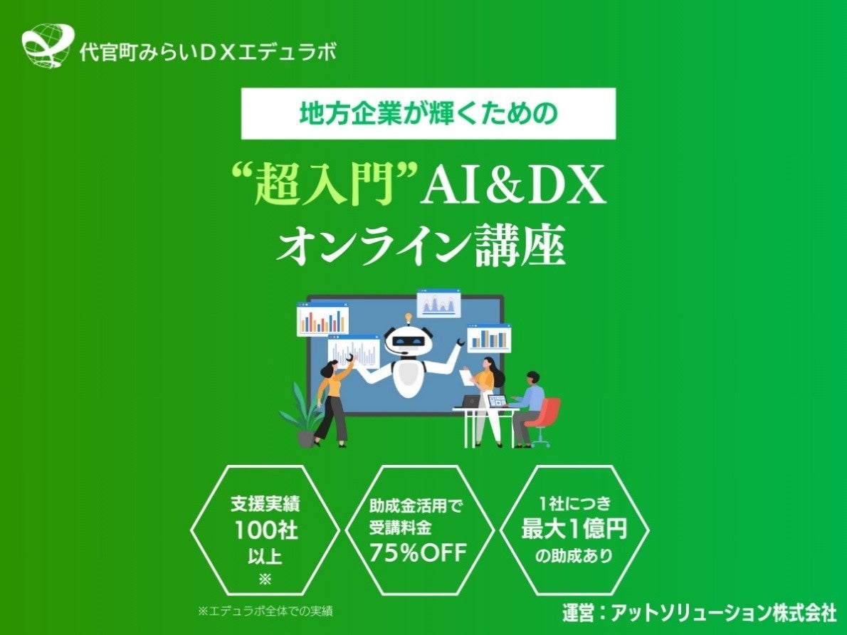 アットソリューション株式会社(愛知県名古屋市)は、地域みらい総研株式会社(東京都港区)と連携し、DX(デジタルトランスフォーメーション)およびAI研修サービス「代官町みらいDXエデュラボ」を開始いたします。まずは自社グループ企業向けに研修を提供し、その成果を基に、より広く地域企業や全国企業に向けてサービスを拡大していく予定です。