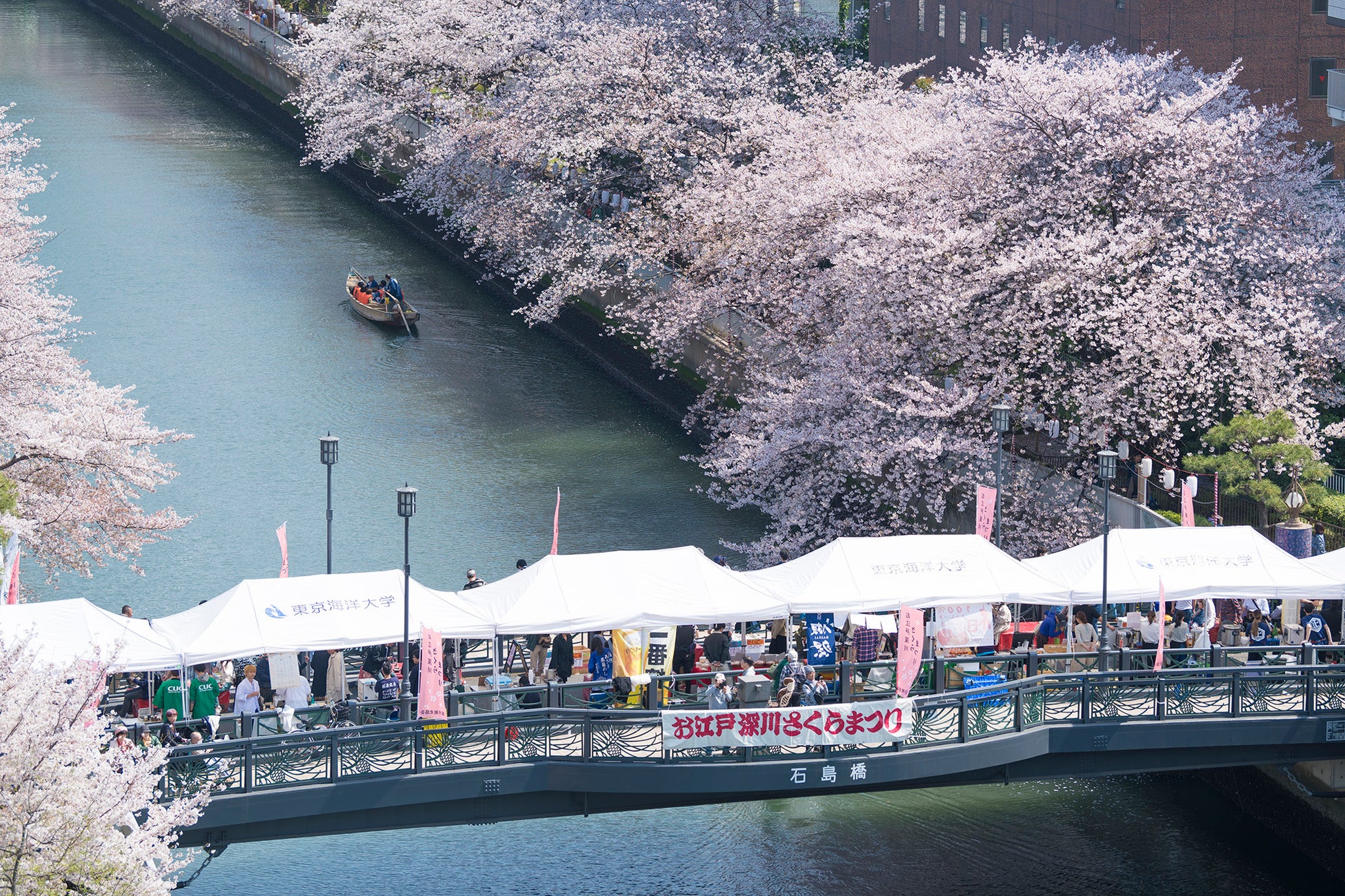 お江戸深川さくらまつり実行委員会(委員長:菅谷 正實)は、本年もお江戸深川さくらまつりを開催します。三味線の音色がこだまする新内流し、幻想的なガムラン演奏、マルシェ、ワークショップイベントなど様々なイベントで、江戸・下町に皆様をお迎えします。水面まで低くせり出した満開の桜のすぐ下をくぐり抜けることができるお江戸深川さくらまつりならではの風情を、ぜひ、広くお伝えください。