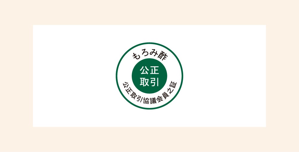 もろみ酢公正取引協議会の会員が製造・販売する製品であり、協議会の承認を得た「もろみ酢公正取引マーク」が表示されているもろみ酢には、もろみ原液が75%以上使用され、安心・安全に飲んでいただける証となっています。