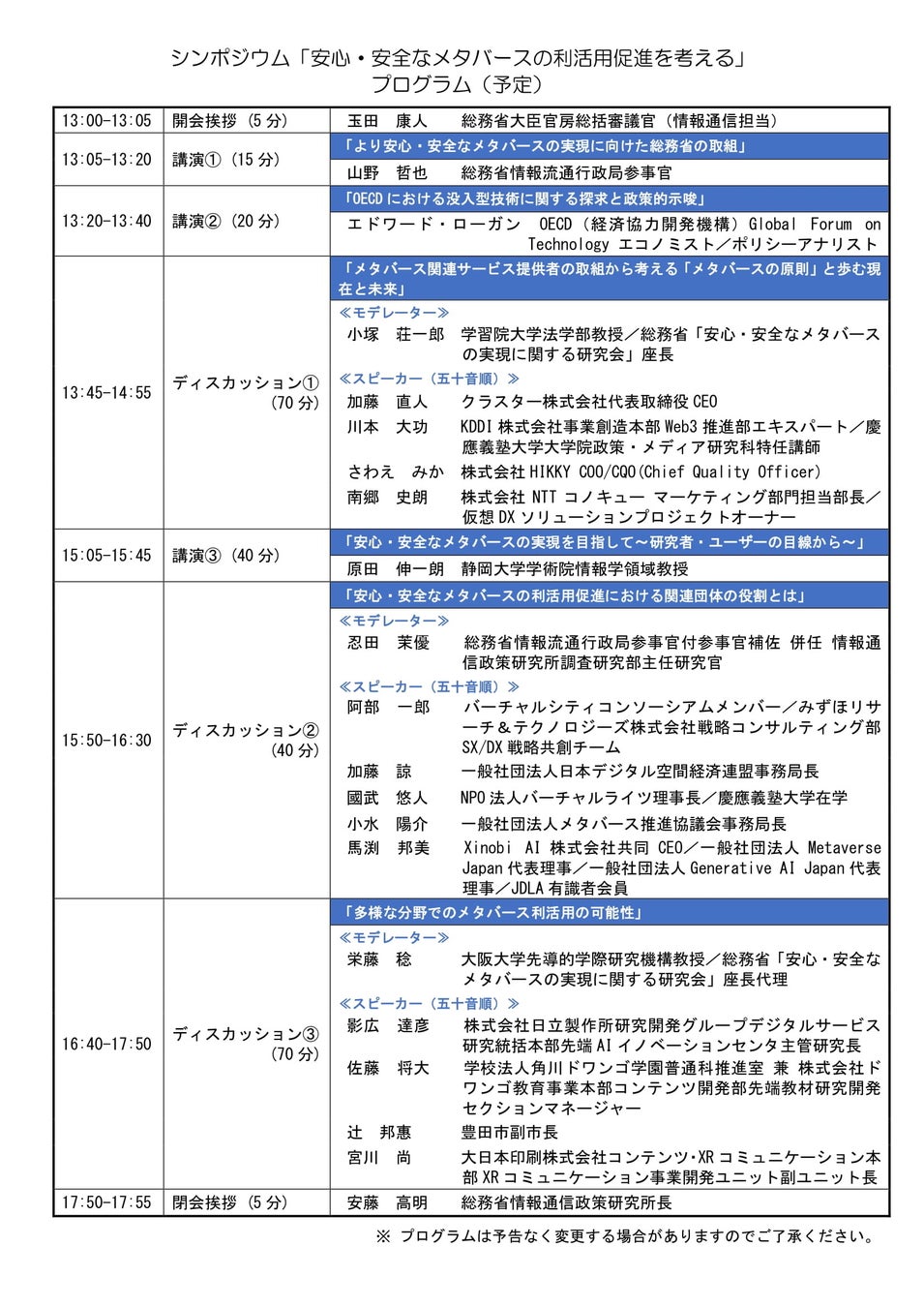 シンポジウム名称:安心・安全なメタバースの利活用促進を考える