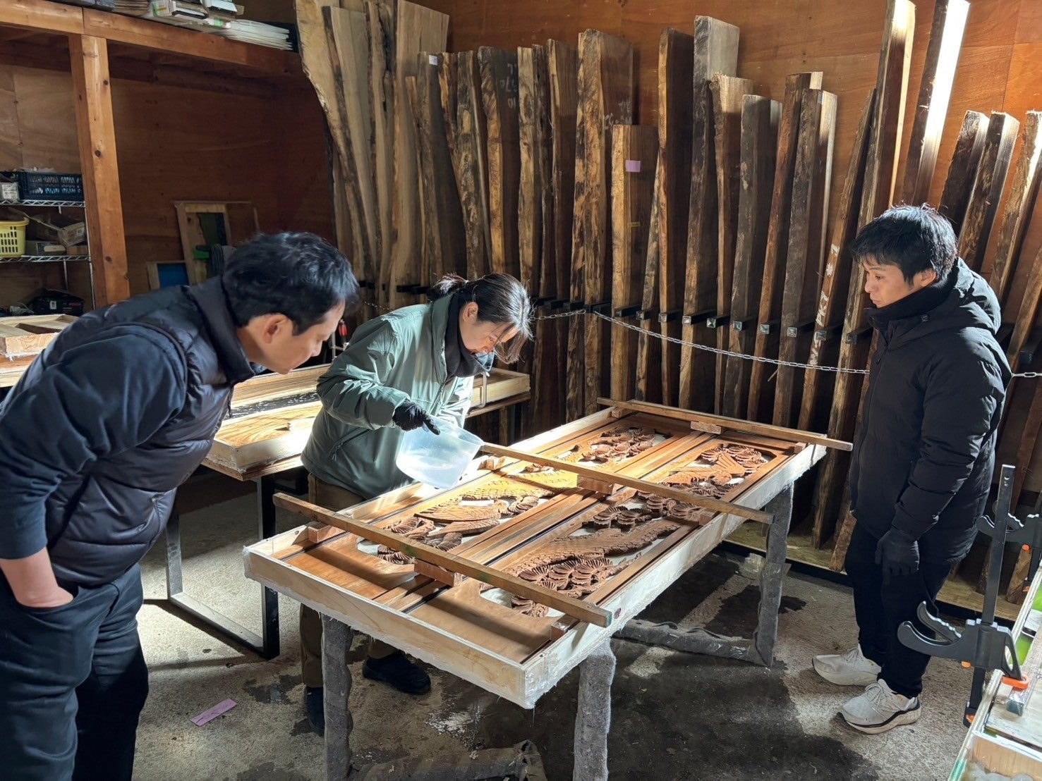 経験豊富なスタッフが、木材の選定からレジンの流し込み、研磨・仕上げまで丁寧に指導します。技術的な不安がある方も安心してご参加いただけます。