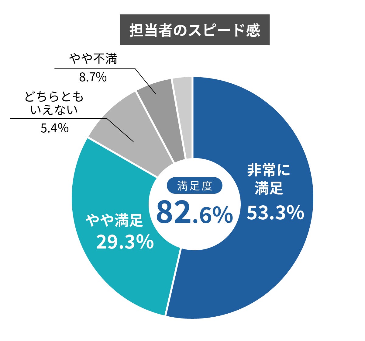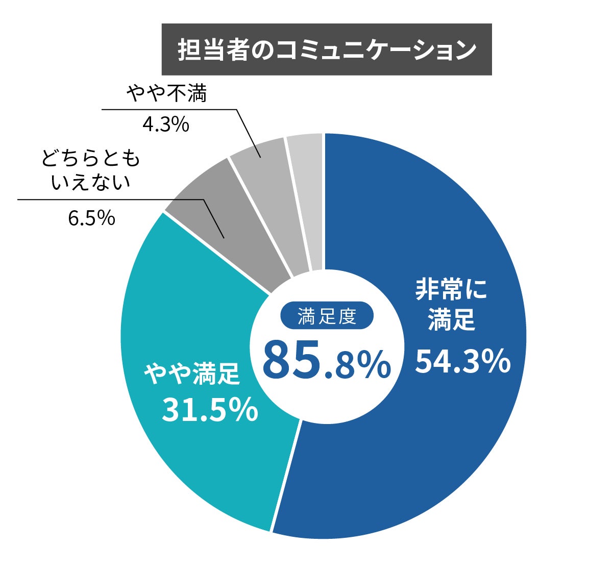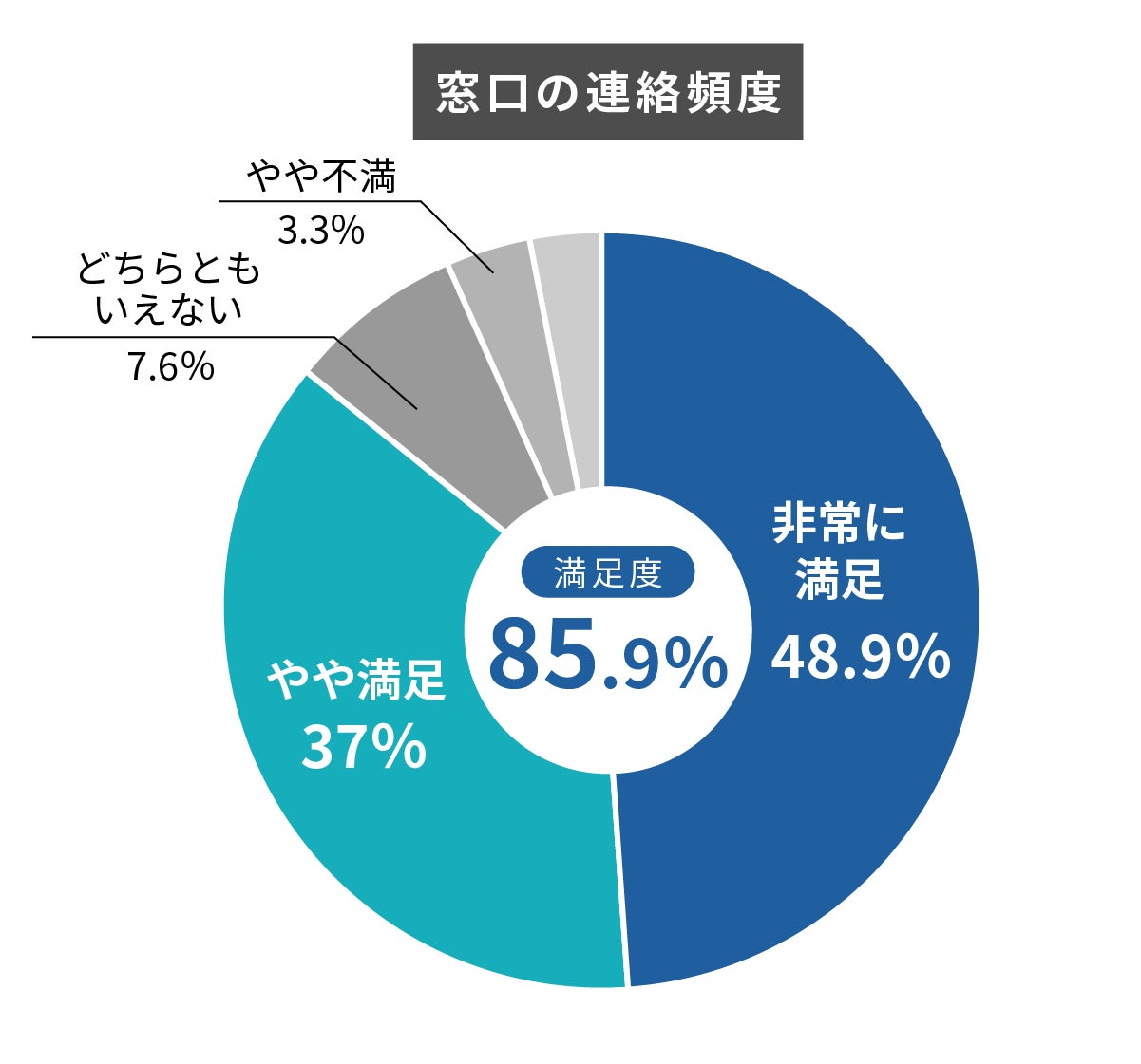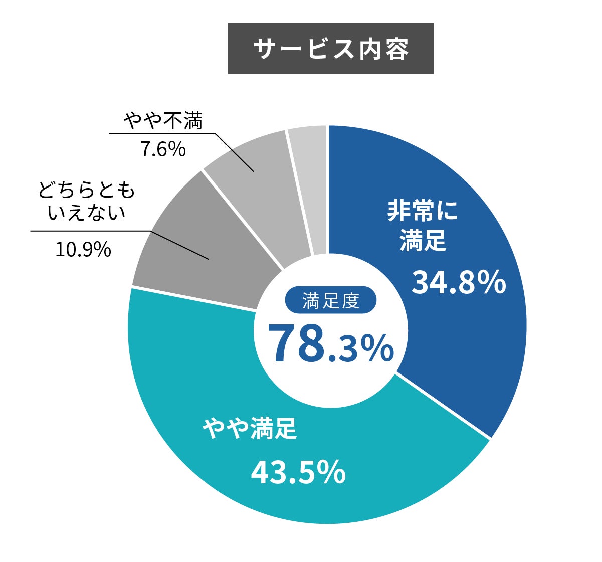 それぞれの項目に対し、「非常に満足」「やや満足」「どちらとも言えない」「やや不満」「不満」の5段階評価です。