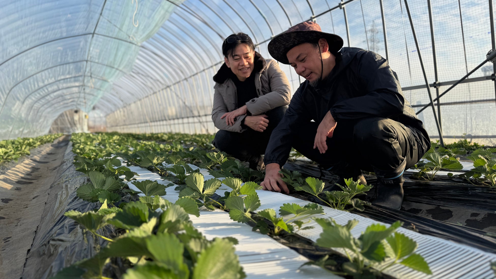 苺屋永井は、2023年に起こった苗床の炭疽菌被害をきっかけに誕生しました。群馬県で眼科クリニックを経営する医師・佐藤拓は、永井の作るいちごに惚れ込み、長年にわたって足繁く農園に通っていました。しかし炭疽菌により苗が全滅し廃業の危機に瀕していた永井からの連絡に、佐藤は自身が代表を務める地域貢献企業 株式会社ギブの新規事業として農園の再生を提案。永井のいちご作りに対する情熱と、他に類を見ない芳醇ないちごをより多くの人に知って頂くために新ブランド「苺屋永井 あまい雫」を立ち上げました。