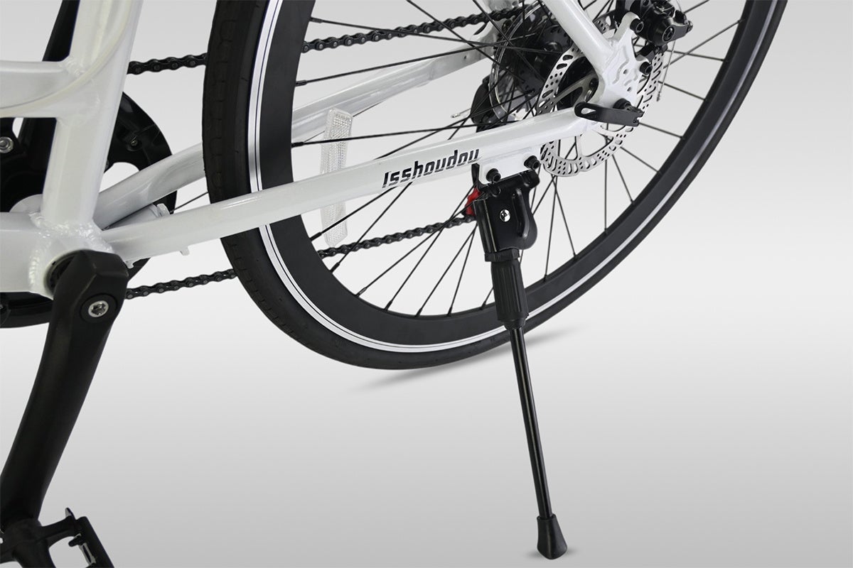 ロードバイクは見た目にこだわりが多い方のために、あえてスタンドもチェーンガードも付けていませんが、クロスバイクは日常使いが主なため、標準装備にしました。