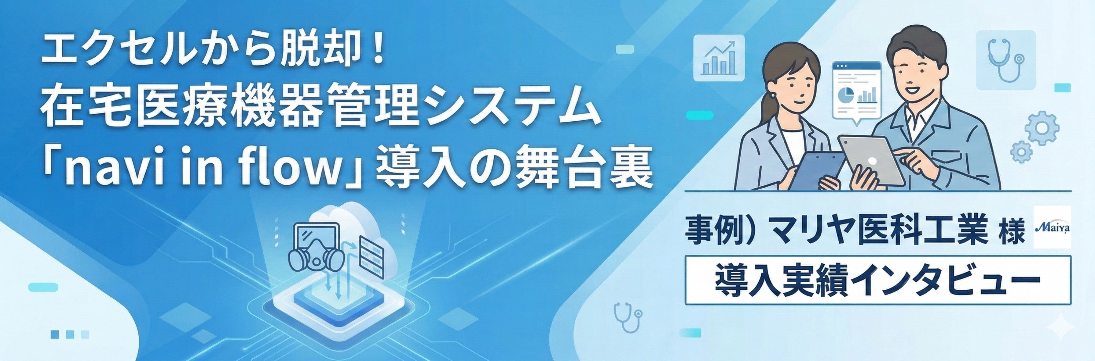 医療システム開発の株式会社CIAS(大阪市中央区、代表取締役:宮本弘士)は、マリヤ医科興業株式会社(本社:兵庫県)へ在宅医療機器管理システム「navi in flow(ナビインフロー)」を導入支援。エクセル管理からの脱却に成功し、業務効率を大幅に改善した事例を紹介する導入実績インタビューを公開しました。