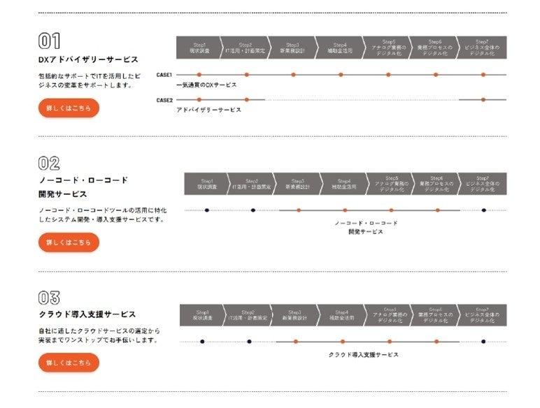 「ちょっとずつ、ちょうどいいデジタル化。」をコンセプトに、DXアドバイザリー、ノーコード・ローコード開発、クラウド導入支援サービスを提供。