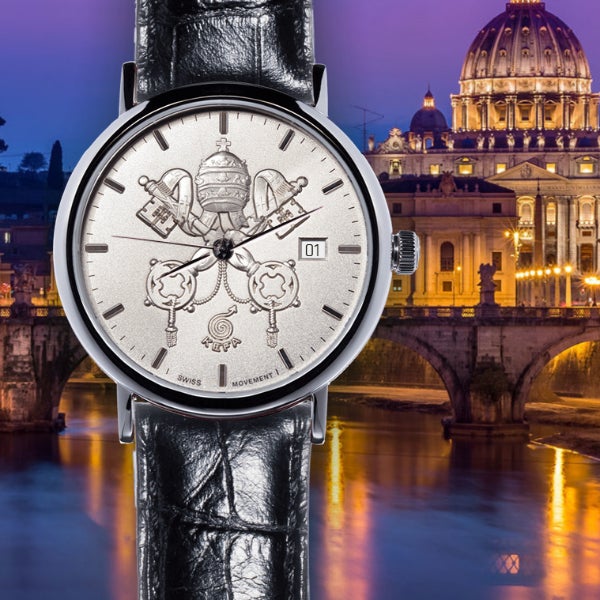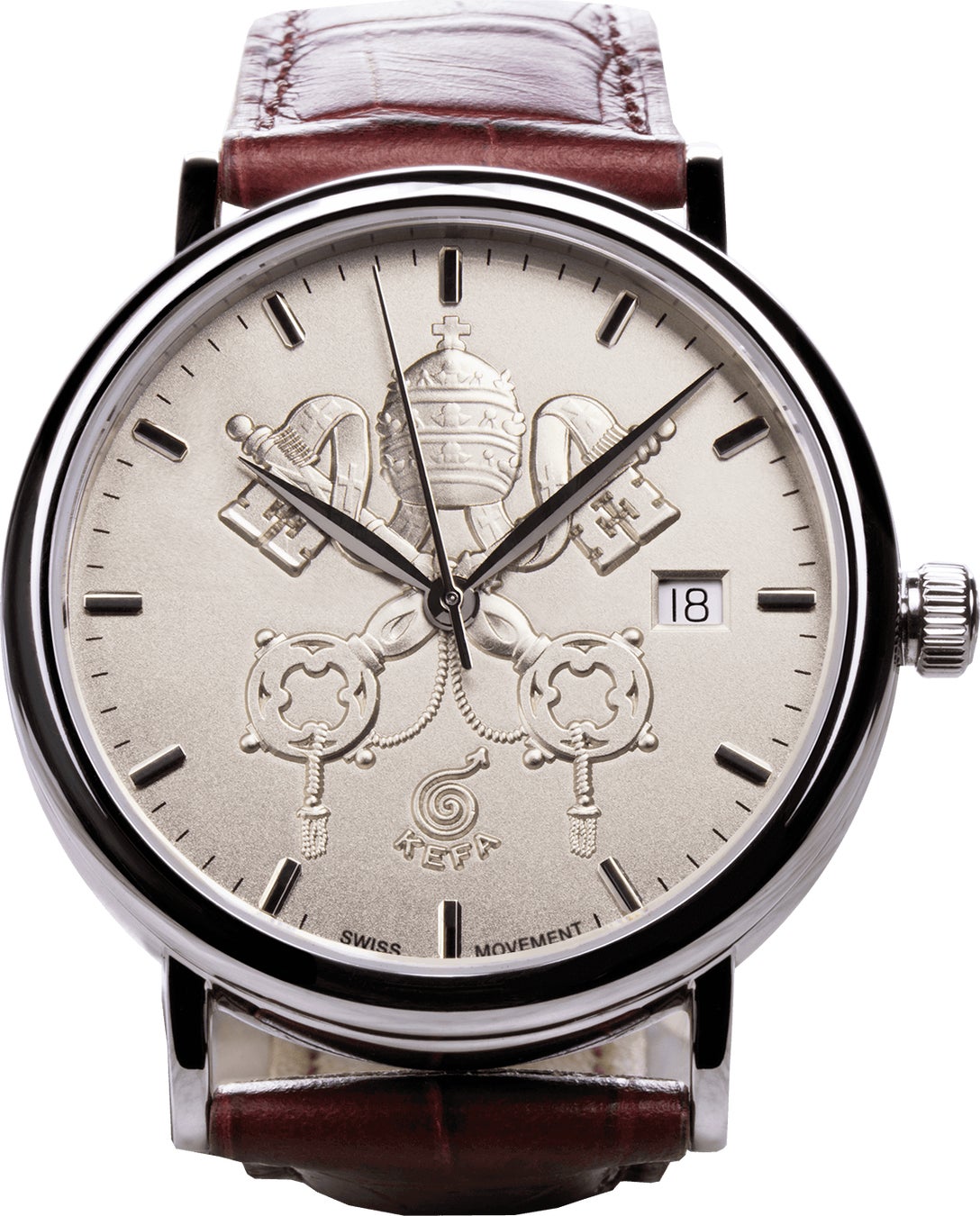 ローマの時計と宝飾品のメーカー・ケファは、教皇からバチカンおよび教皇の紋章を複製する独占許可を与えられました。バチカン市国と教皇フランシスコの紋章がデザインされた腕時計は、教皇着任の2013年を記念し、2013本のみ限定生産される貴重なリミテッドエディションです。
