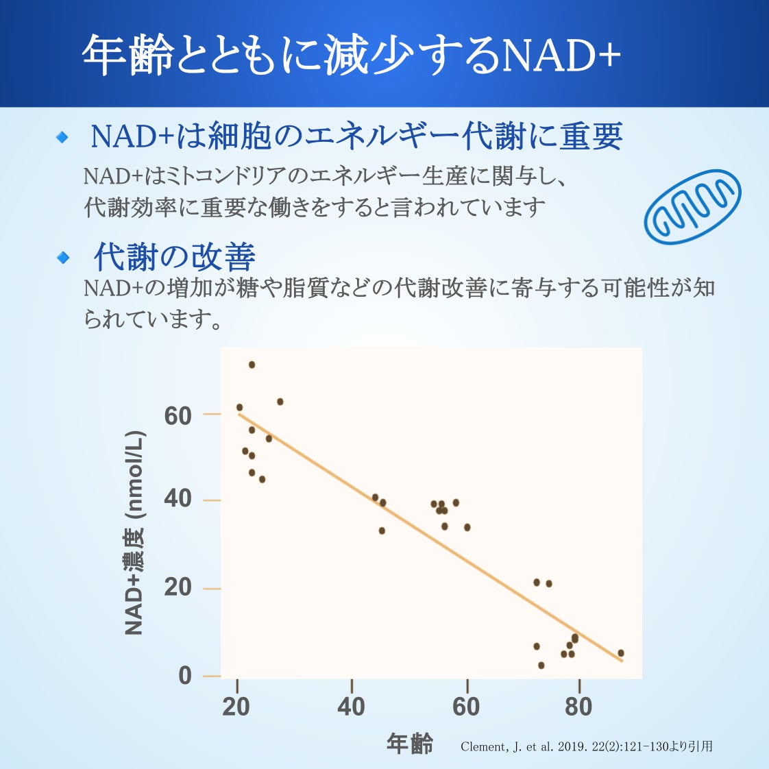 私たちの体内で、エネルギー代謝や健康維持に関与する「NAD⁺」は、年齢とともに減少することが知られています。