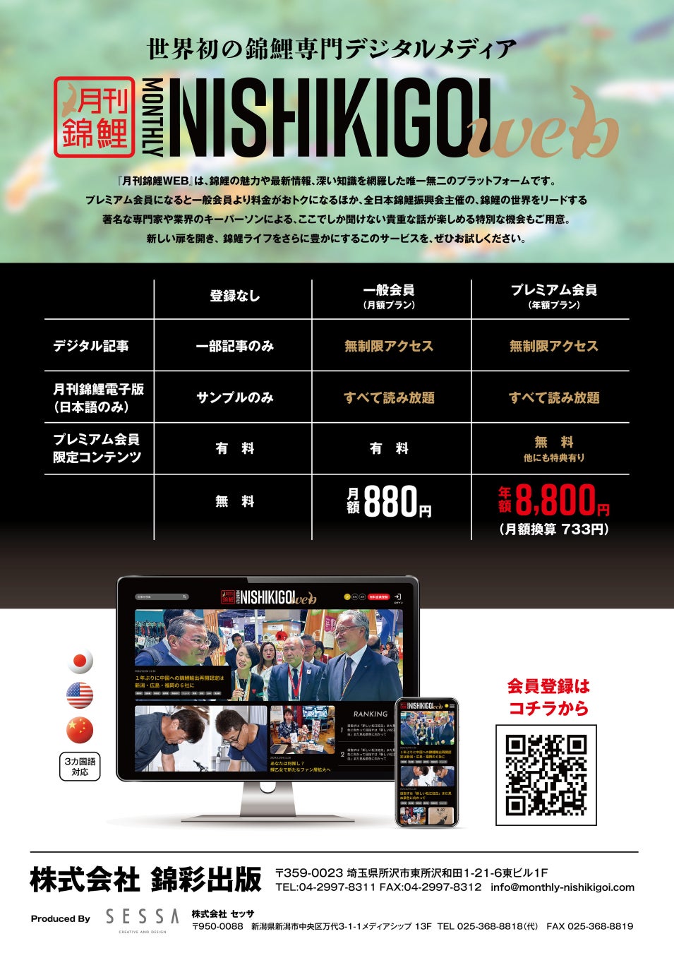 ▶ 「月刊錦鯉WEB」で、世界中の錦鯉愛好家とつながる新時代を迎えましょう!
