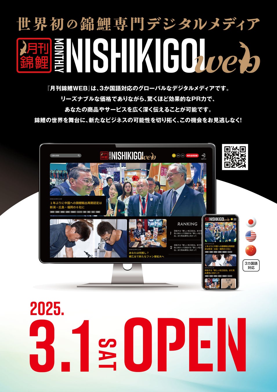 錦鯉ファンなら絶対に見逃せない!世界初の錦鯉専門デジタルメディア 「月刊錦鯉WEB」(https://monthly-nishikigoi.com)が、2025年3月1日より公開。