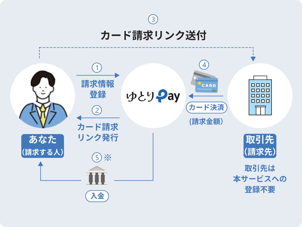 一方、請求する企業側にとっても、カード請求リンクを発行して送付するだけで、簡単にカード決済による早期の入金が可能となります。これにより入金遅れや未回収リスクを回避でき、安定したキャッシュフローを実現します。