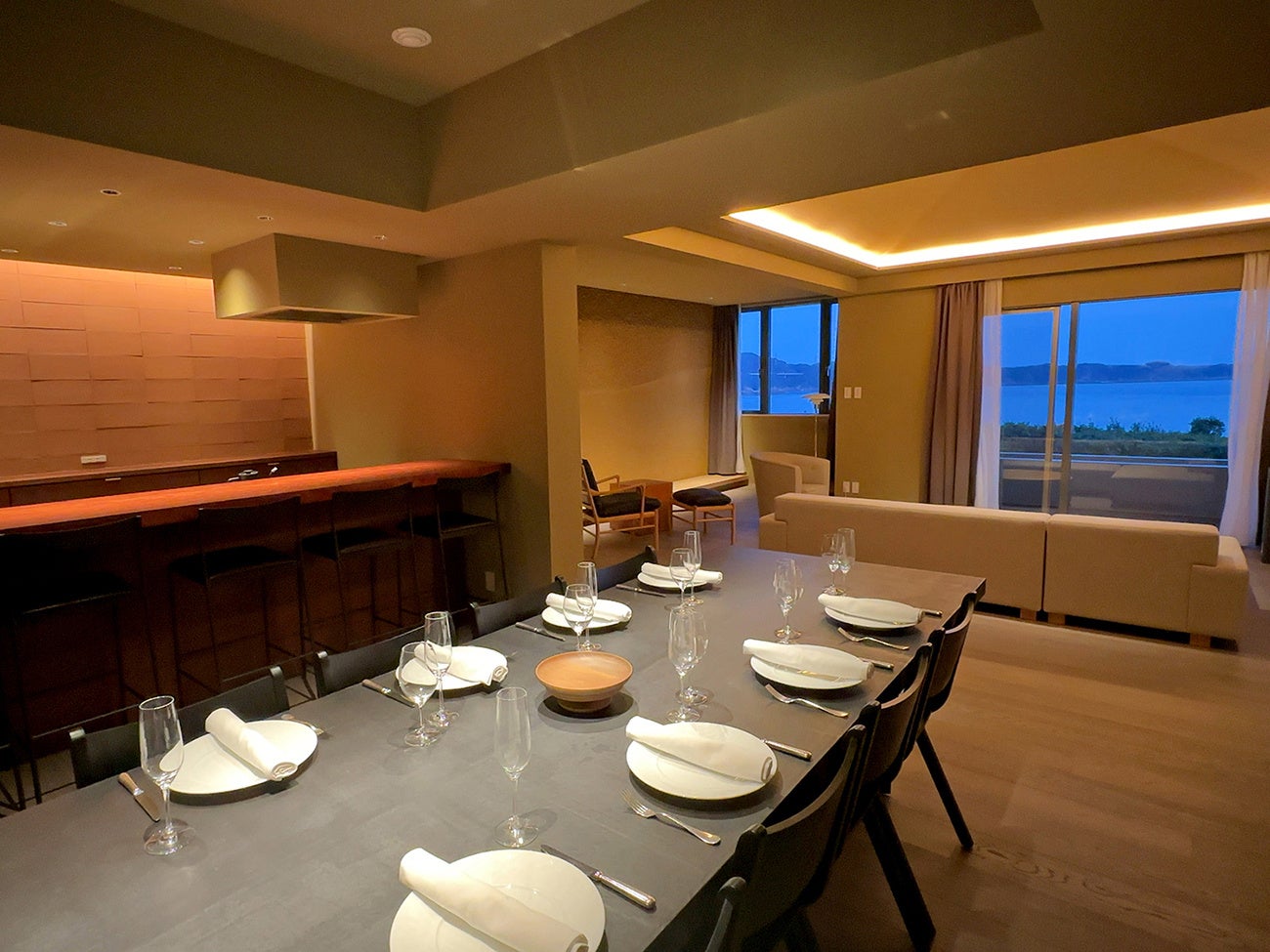 ホテルアナガに受け継がれる独特の時間を大切にしながら、阿那賀ならではの趣を表現したこの空間は、華美ではなく、心を落ち着かせる静謐な佇まい。まるで暮らすように、ゆったりと滞在をお楽しみいただけます。
