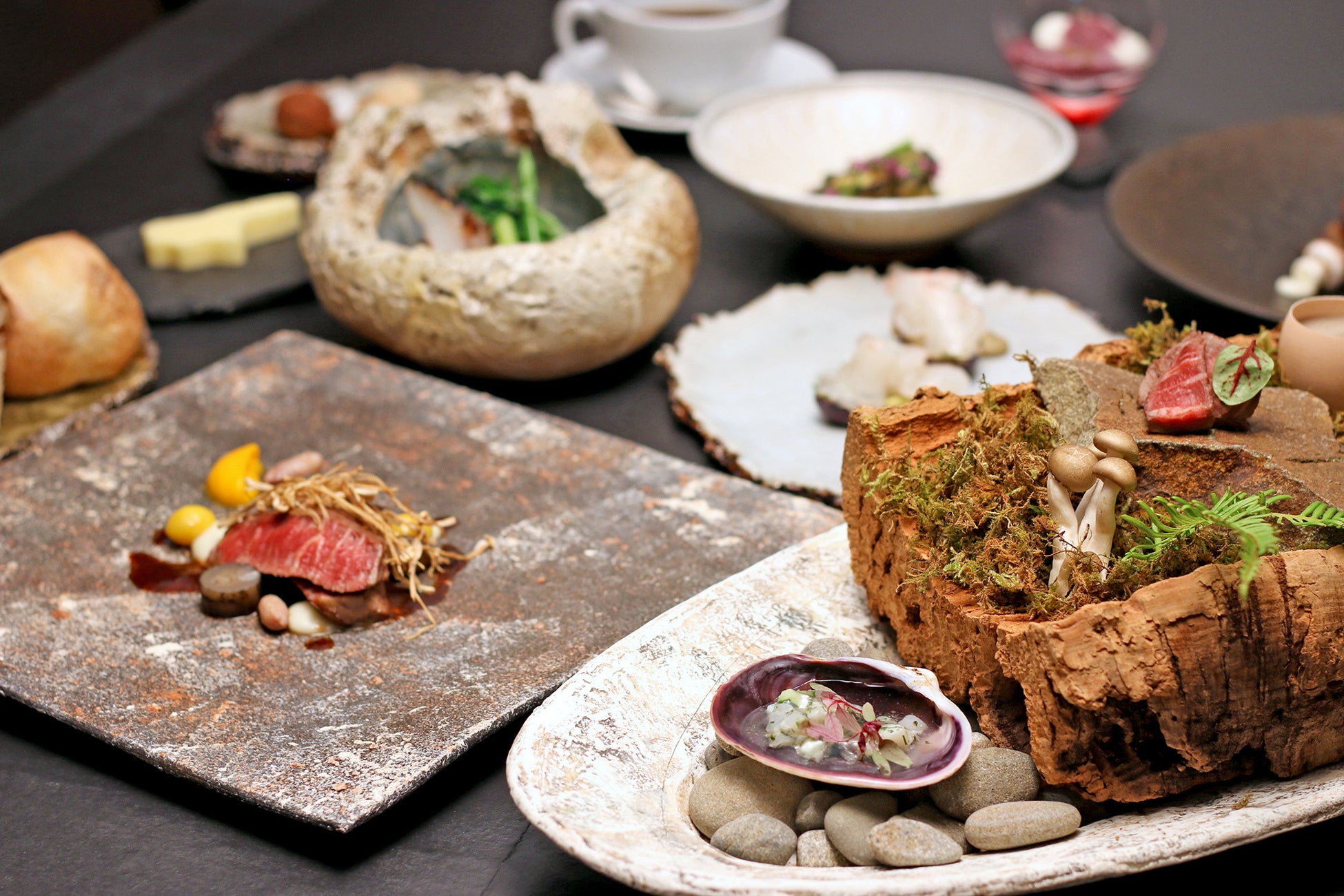 地元の作家たちによる美しい器達と調和した淡路島キュイジーヌを提供いたします。