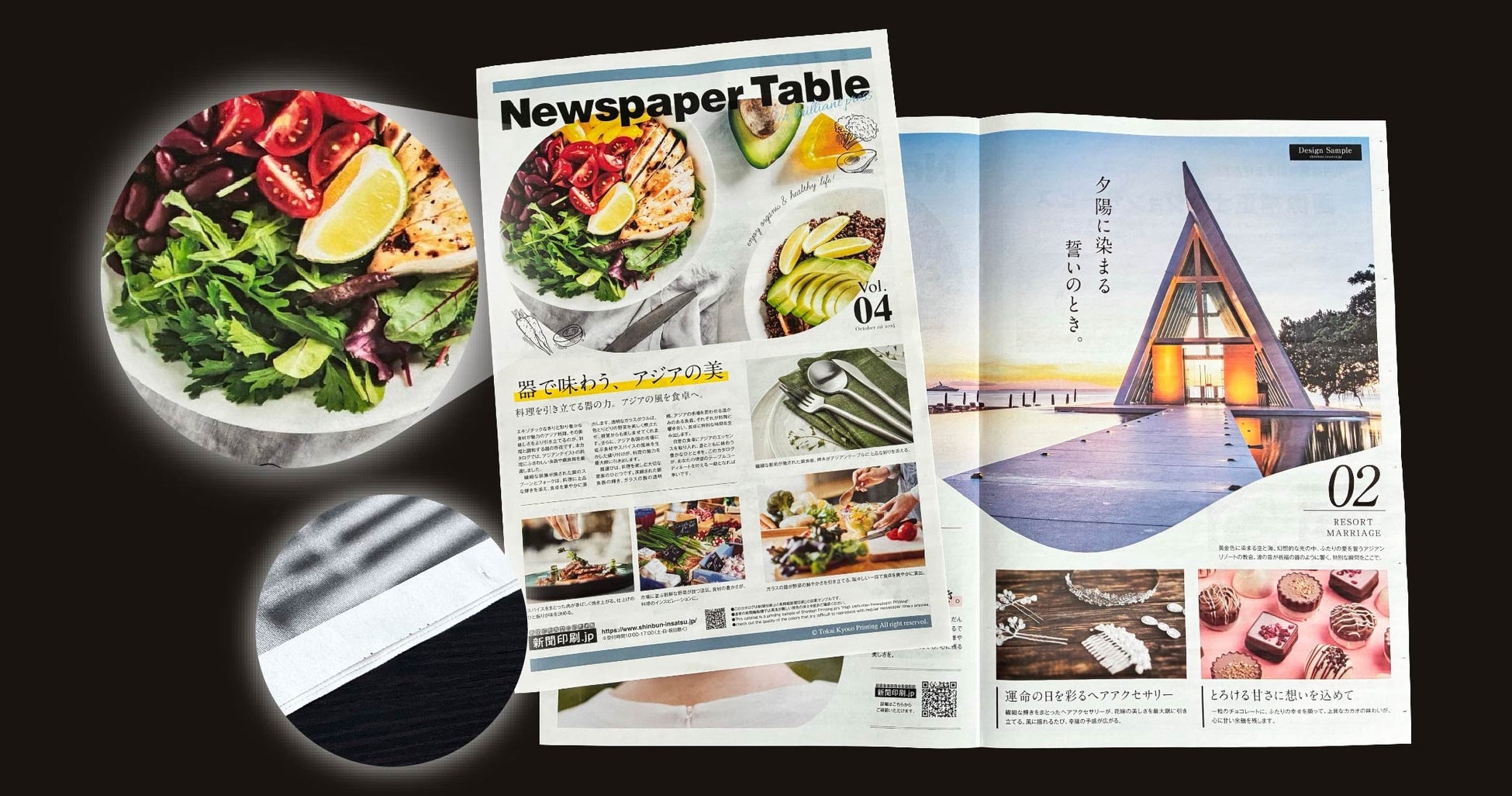 光のニュアンス、素材の質感、空間の温度感。従来の新聞印刷のイメージを覆す精緻かつ彩度の高い印刷で、写真やイラストが語り出す世界を紙面に閉じ込めます。