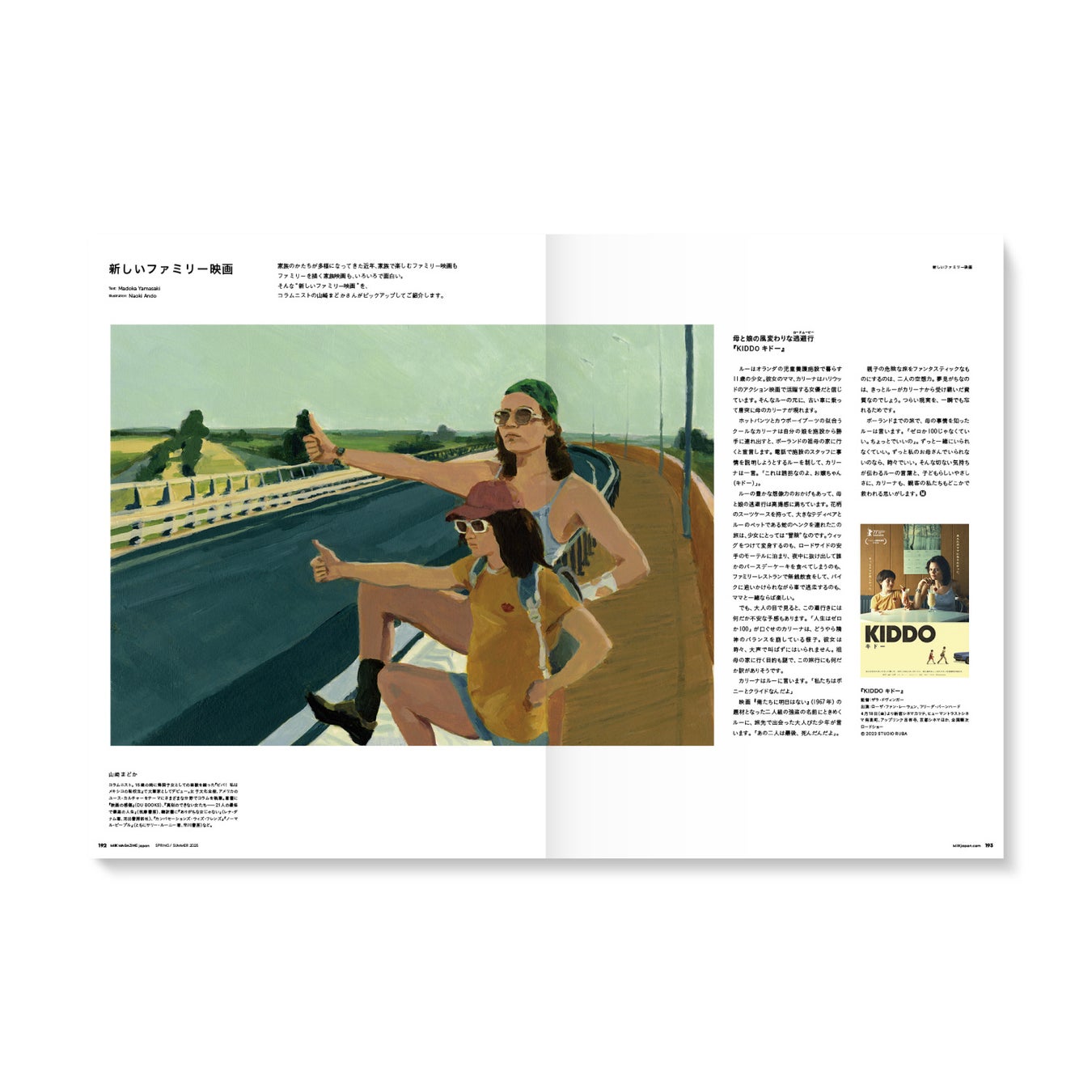 写真家の原点を探るインタビュー「INNOCENT VIEW」には大森克己さんが、子どもたちへエールを送るエッセイ「Sense of Wonder」には「無駄づくり」の藤原麻里菜さんが、子どもと一緒に家族で楽しみたいアートを紹介する「Art to make you smile」では画家の森本啓太さんが登場。山崎まどかさんによる「新しいファミリー映画」では4月18日(金)より公開の母娘のロードームービー『KIDDO キドー』を紹介しています。また今号より、小林エリカさんの「おこさま人生相談室」はお答えするおこさまたちがティーンズになり「おこさま人生相談室+」として再スタートしました。