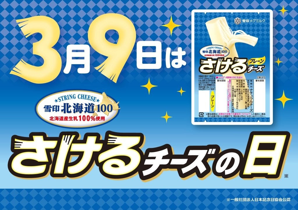 雪印メグミルクは、“さ・くの語呂から”3月9日を「さけるチーズの日」に制定し、一般社団法人日本記念日協会に記念日として正式に認定されました。
