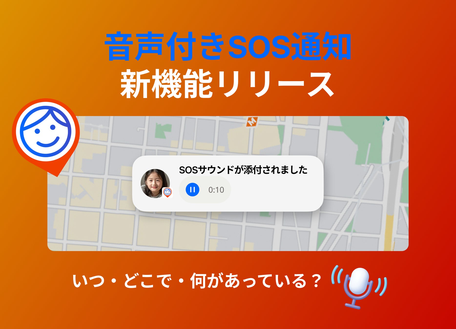 本機能は、ユーザーが助けを求めており、声が出せない状況下であっても、周囲の音まで送信することで保護者が位置と状況を正確に把握できるように設計されています。