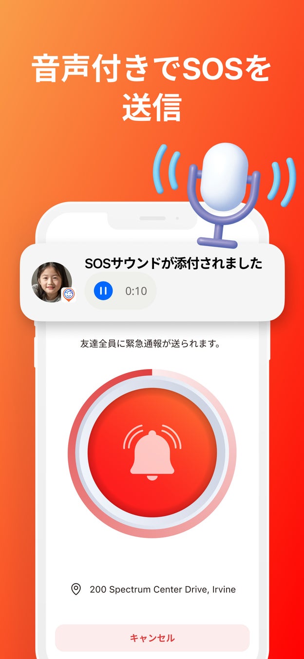 事前に選択した友達や家族といった緊急通知対象者に、周囲の音も届けることで「いつ・どこで・何があったか?」をより正確に伝えることができ、緊急時の対処に役立てることが可能です。