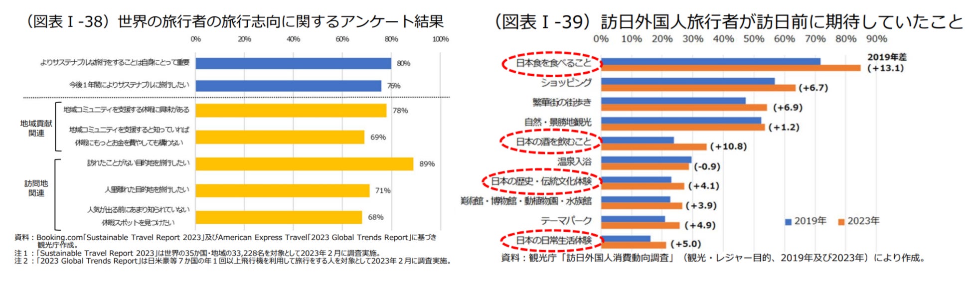 近年、世界の旅行者の間で、持続可能な観光や地域貢献、まだ知られていない目的地への関心が高まっています。国土交通省観光庁の「令和6年版観光白書」(図表I-38, 図表I-39)によると、旅行者は地域コミュニティを支援する休暇や都市部ではなく地方への訪問に魅力を感じており、日本食や伝統文化、日常の暮らしへの興味も高まっていることが、下記のグラフからも読み取れます。こうした背景を踏まえ、その地域ならではの観光資源を活かしたサービスの発信や可視化が、地方活性化の重要な鍵となると考えています。