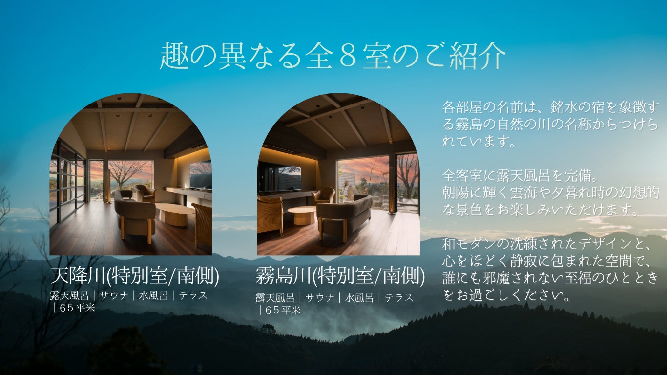 2025年3月3日、鹿児島・霧島にわずか全8室の「霧島雲海テラス 銘水の宿 霧の里」 が開業します。極上サウナ、天然水風呂、絶景外気浴のあるととのい宿。自然と清らかな名水が織りなす至福のリトリート。