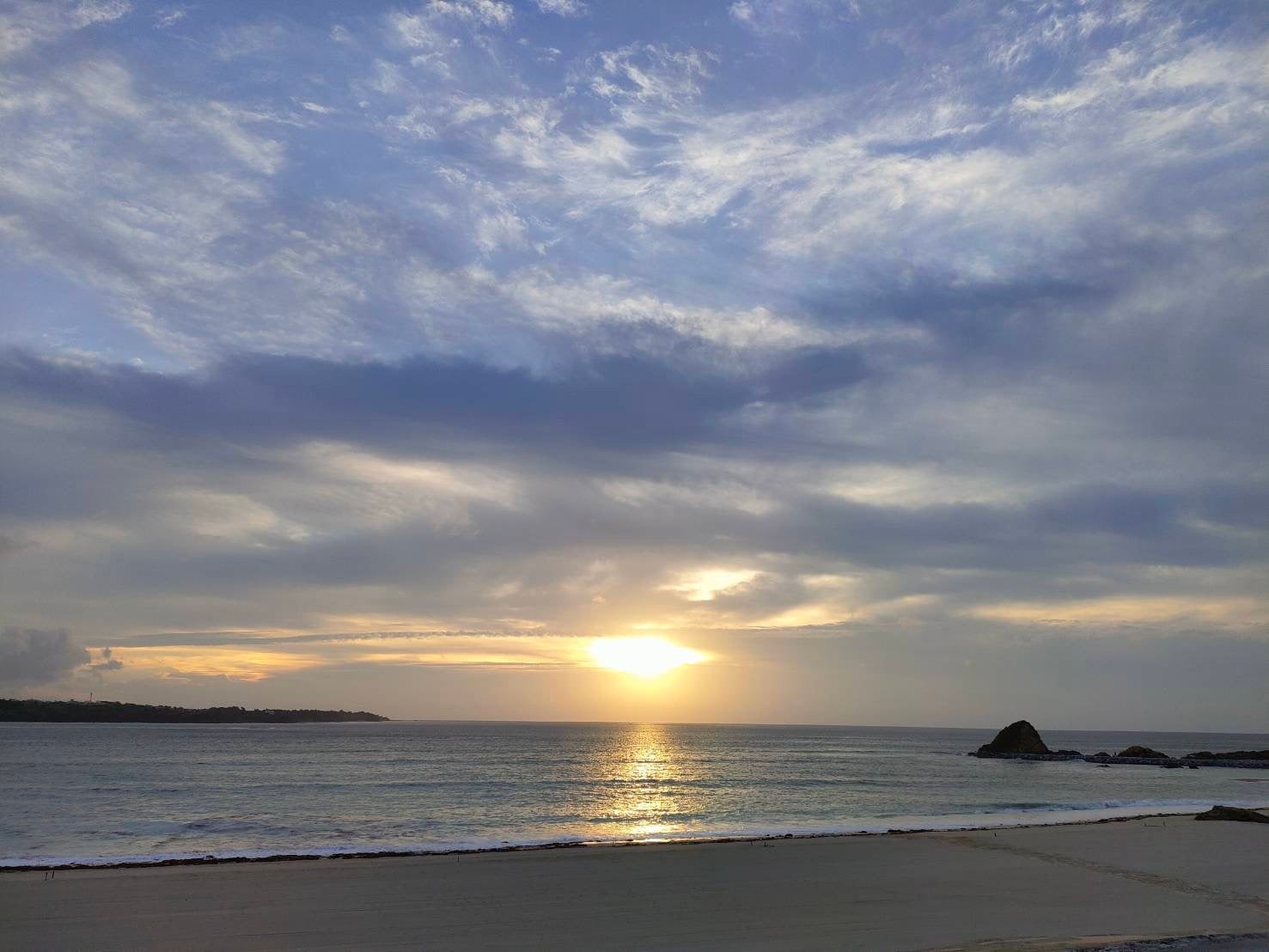 翌朝は、まだ空が薄暗い時間に起床。ホテルから徒歩5分の「KINサンライズビーチ」へ向かい、静寂の中で朝日が海を染めていく瞬間を味わいます。沖縄の東海岸に位置するこの場所だからこそ体験できる、幻想的な時間。