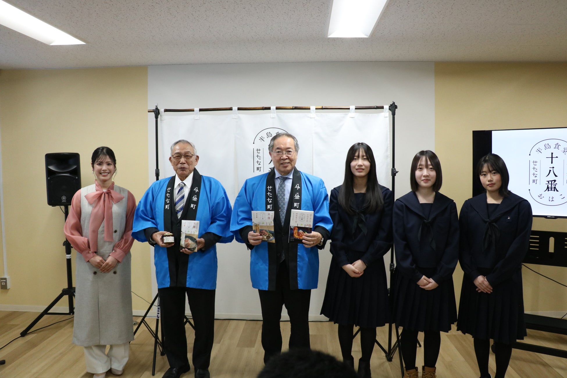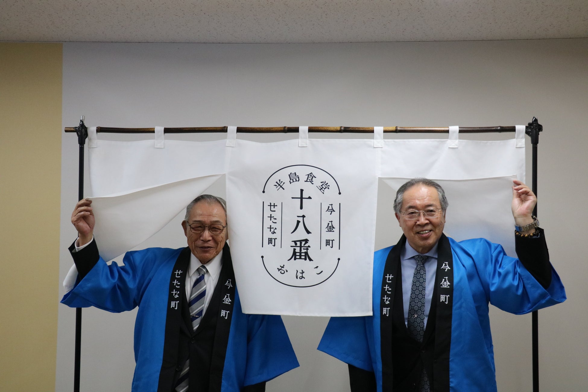 記者発表には2町の町長が出席し、「渡島半島は一次産業が盛んな食材の宝庫。地域で最も優れた産品を使いました」(高橋貞光・せたな町長)、「地域産品には美味しいものがたくさんある、ということを都市部の皆さんにも発信したい」(中島光弘・今金町長)と話しました。