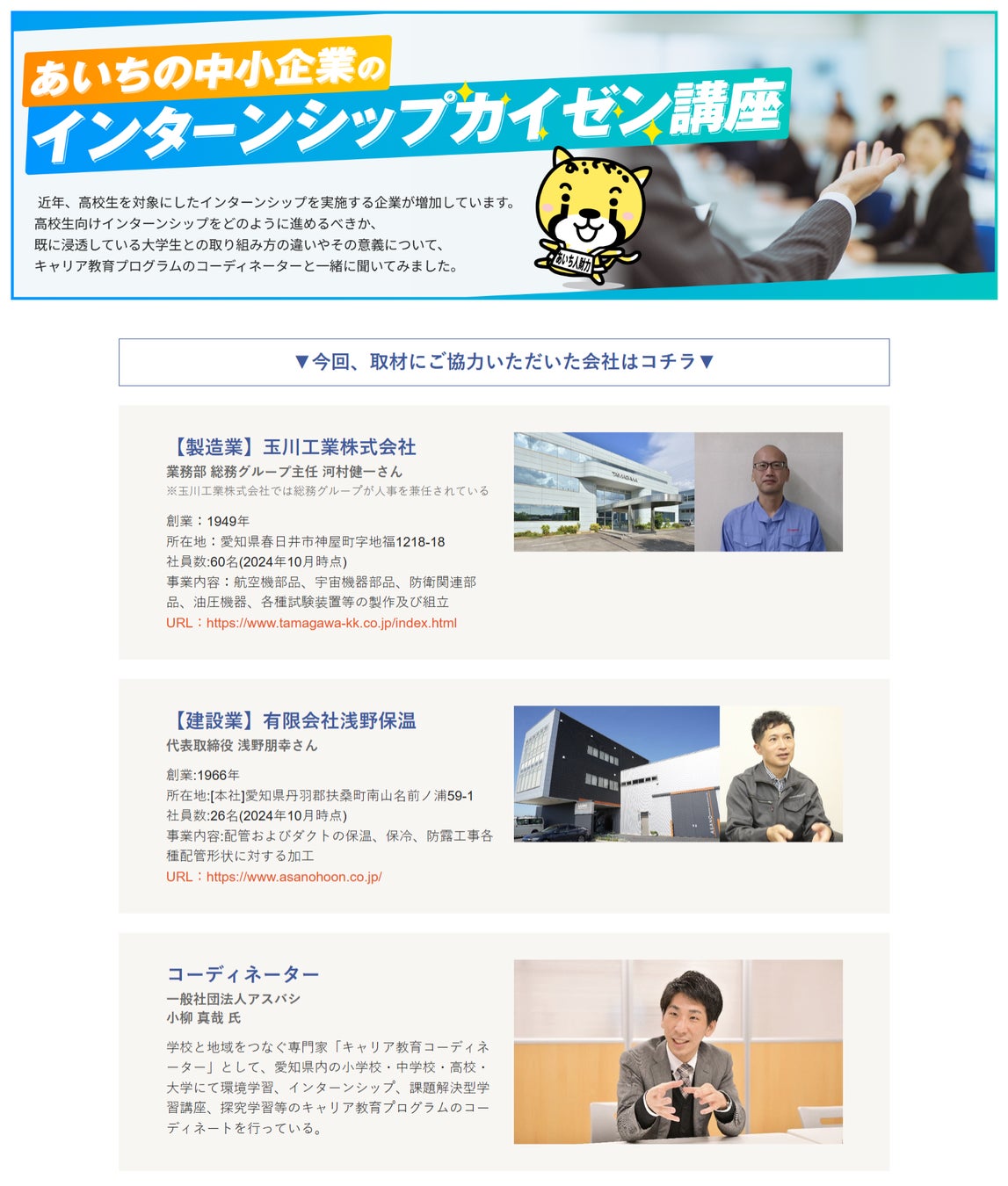 愛知県労働局産業人材育成課が運営する人材育成情報を一元化したポータルサイト「ひと育ナビ・あいち」にてWebコンテンツが公開されました。