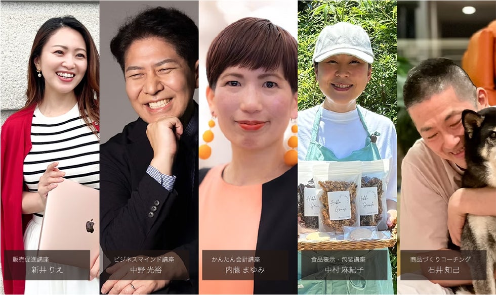 5つのコア講座とは、①ビジネスマインド、②コンセプトから考える売れる商品完成コーチング、③販売促進、④会計・確定申告、⑤食品表示・包装です。