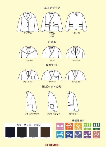 カジュアルで普段使いしやすい「TINKERBELL」の特徴を毎日着る園児服に活かしたデザインをパターンオーダーで承っています。
