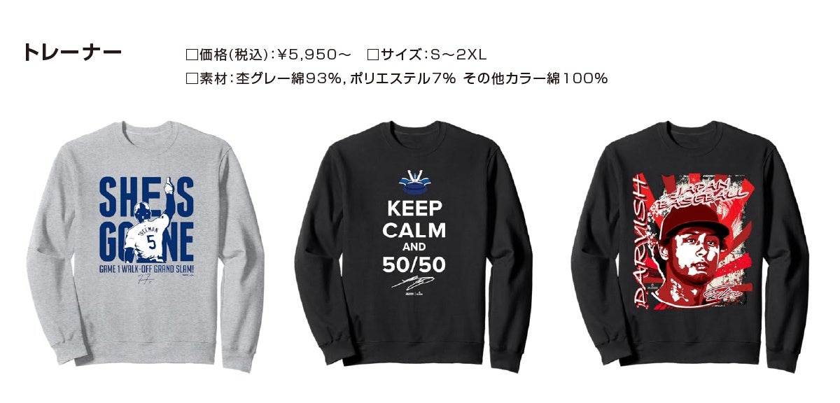また、アーロン・ジャッジ、ブライス・ハーパー、ポール・スケーンズ、ムーキー・ベッツ、フレディ・フリーマンなどMLBのトッププレーヤーをデザインしたアイテムのご購入も可能です。