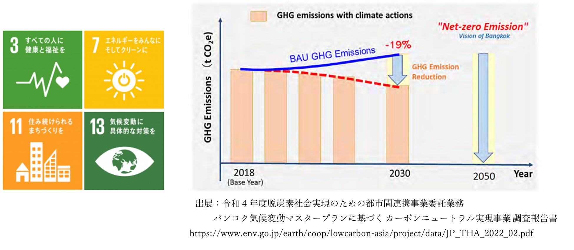 タイに限らず東南アジアでは、家庭や工場から出る食品廃棄物を償却する際の二酸化炭素や粉塵、メタンガス発生などの環境汚染が問題となっています。2021年から2030年までの期間に、技術開発・移転へのアクセス、資金リソース及び能力開発に係る国際的支援を条件としてBAU比排出量の 40%削減を目標としています。