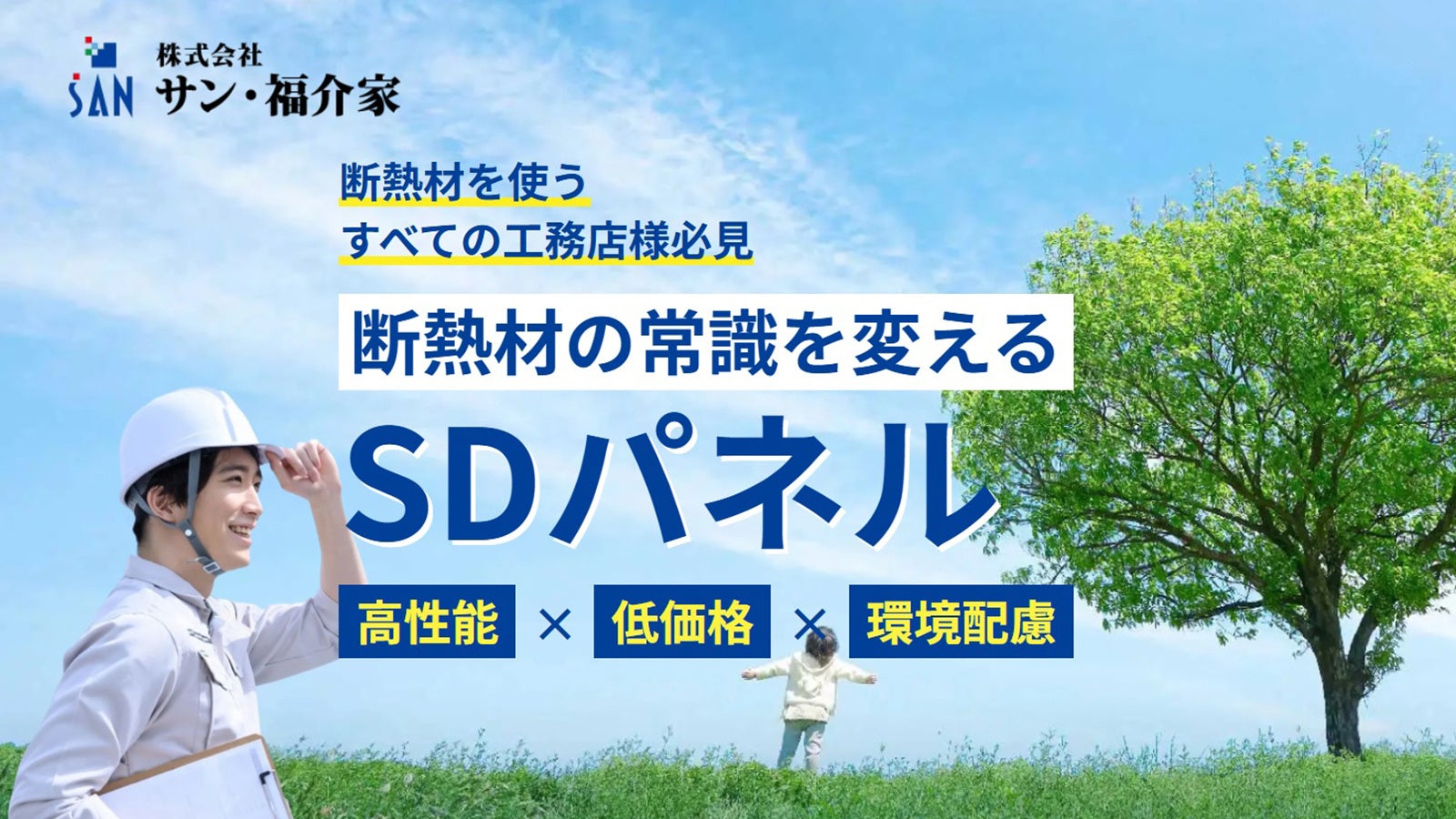 木材・建材販売を手掛ける株式会社サン・福介家(千葉県八千代市)は、断熱材の端材をリサイクルし、断熱性能はそのままに低価格を実現した次世代断熱パネル「SDパネル」の販売を始めました。本来は廃棄される端材をリサイクルしているため、SDGs=環境にも配慮した製品です。