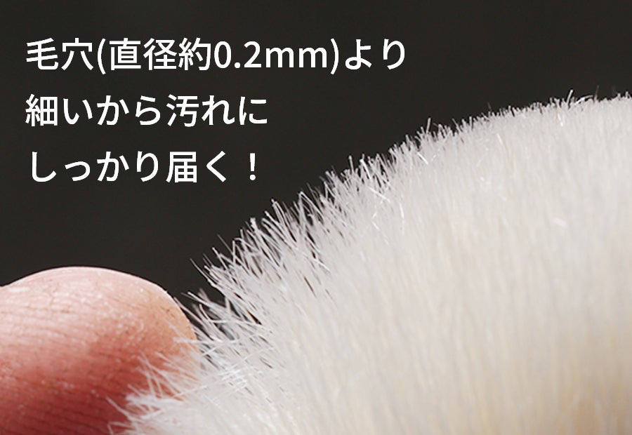 熊野筆0.04mm、富岡シルク0.03mmの極細毛が、頑固な毛穴汚れをしっかり取り除きながらも肌に優しく触れ、傷つけるリスクを最小限に抑えます。
