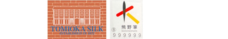 製品には熊野筆・富岡シルクの両方のラベルをつけ、確かな品質を保証します。