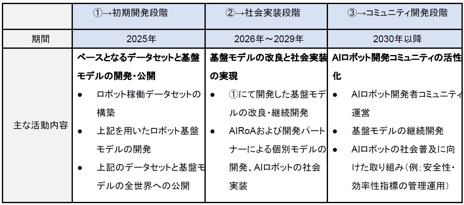 オープンかつ大規模なデータ収集と基盤モデルの開発・公開を推進し、ロボット産業全体の発展を目指す