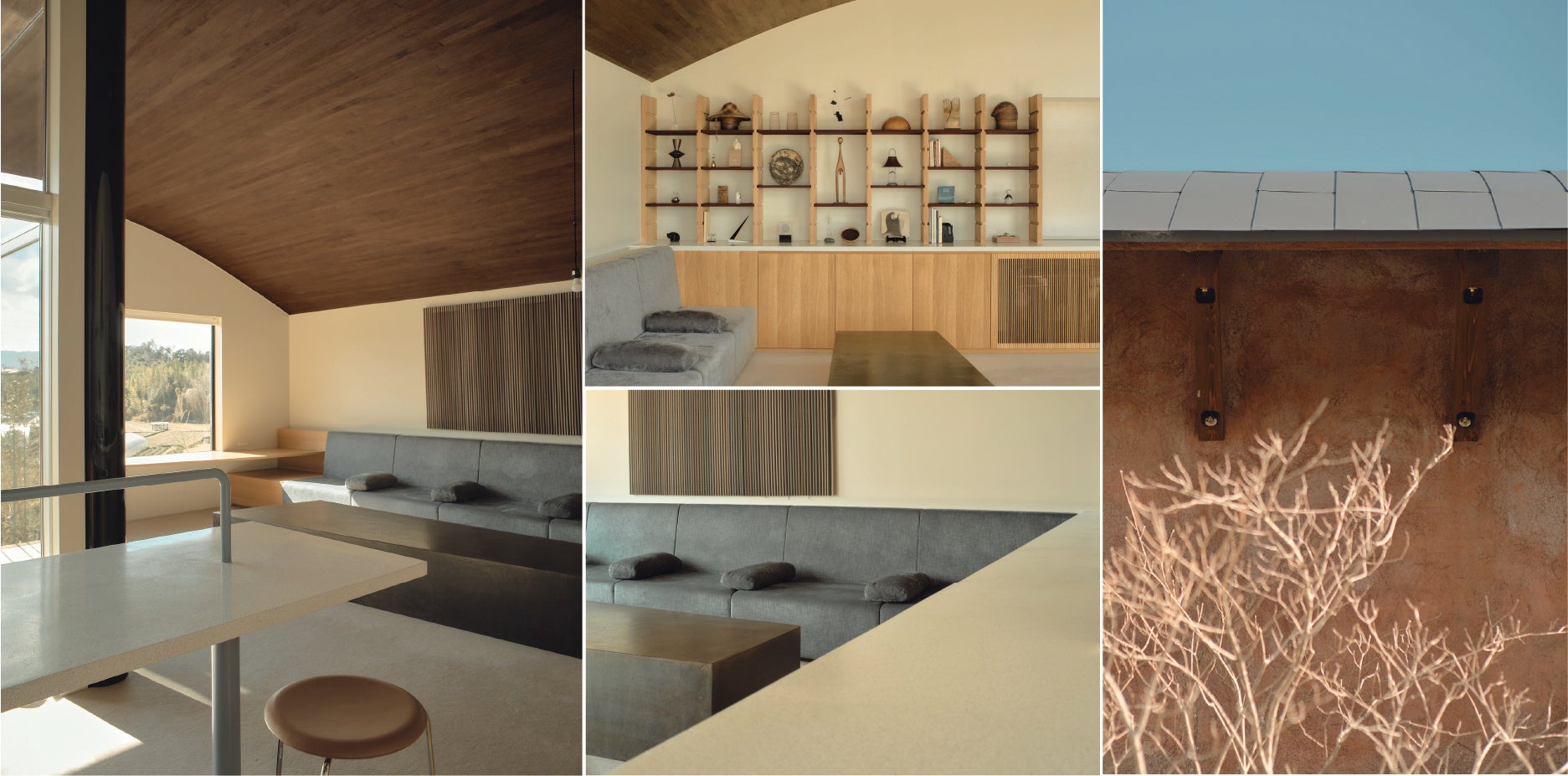 空間の随所に、Tactile Materialが手掛けた工芸建材が施されています。部屋の中心に据えられた意匠柱には越前漆を、羊毛を混ぜた和紙の建具には越前和紙を採用。伊達冠石をいかした洗面台や、水回り含め全室に敷き込まれたウールカーペットなど、指先で、足裏で、全身で、工芸建材の魅力を味わっていただける空間です。 一般向けの宿泊プランやレンタルハウスプランほか、建築関係者および施主向けにアテンド付き施設見学サービスもご用意しています。