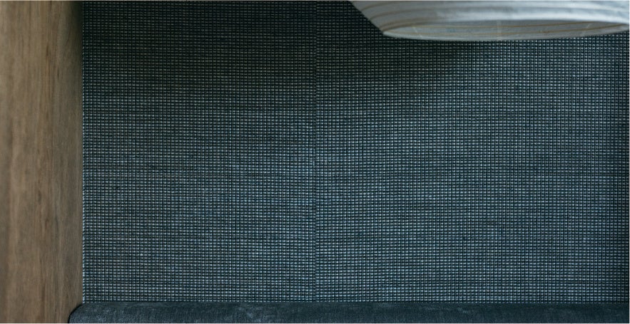 京都府木津川市の小嶋織物は、天然素材を活かした織物壁紙を製作。織物がつくりだす立体感、繊細な美しさと大胆さ。アクセントにもなる存在感のある織物壁紙を寝室に採用しています。