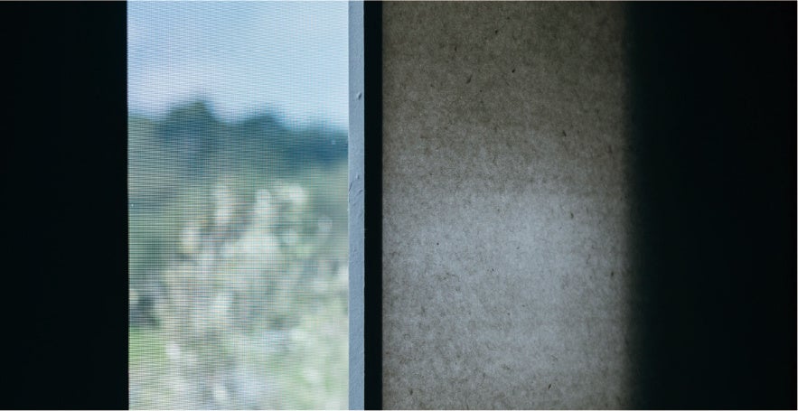 床面のウールカーペットに調和するよう、羊毛を混ぜたオリジナルの越前和紙を制作。羊毛が生む独特の風合いと手漉きならではのざらざらとした手触りが、自然光の豊かな表情を引き出します。