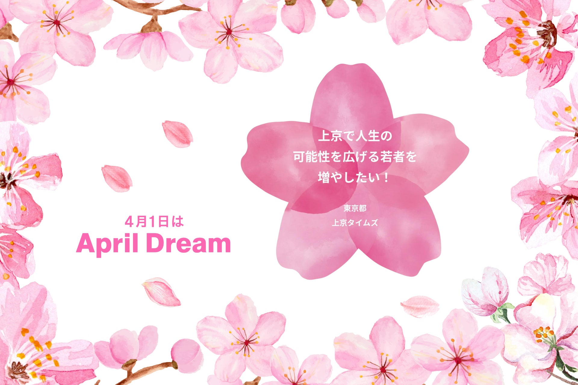 当メディアは、4月1日を夢を発信する日にしようとするApril Dreamに賛同しています。このプレスリリースは上京情報メディア「上京タイムズ」の夢です。