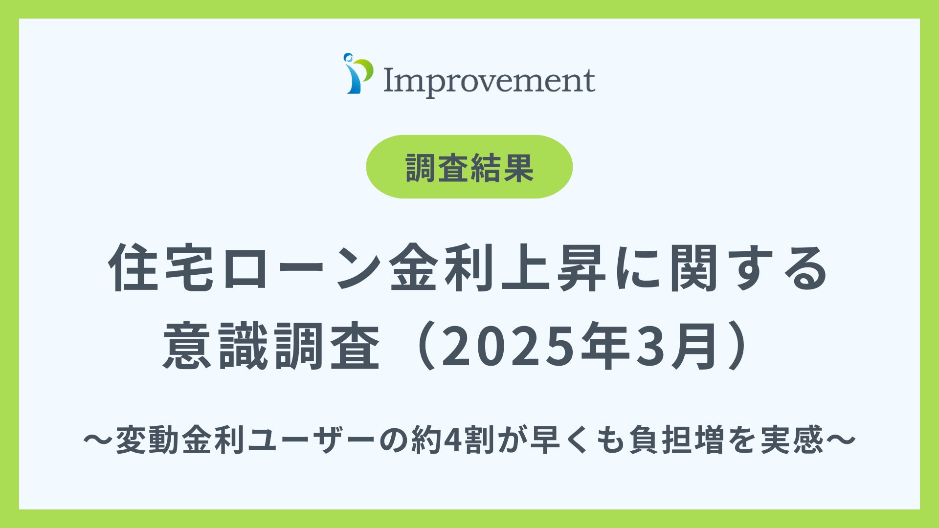 首都圏を中心に任意売却サービスを提供するインプルーブメント株式会社(本社: 東京都港区、代表取締役: 安達 真也)は、20代以上で変動金利の住宅ローンを返済中の方/251名を対象に、「2025年の住宅ローン金利上昇と返済負担」に関する意識調査を実施しました。