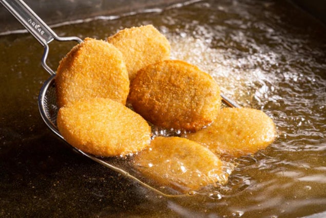 きめ細かいパン粉を使用することで、余分な油を吸わず、カリカリな衣で