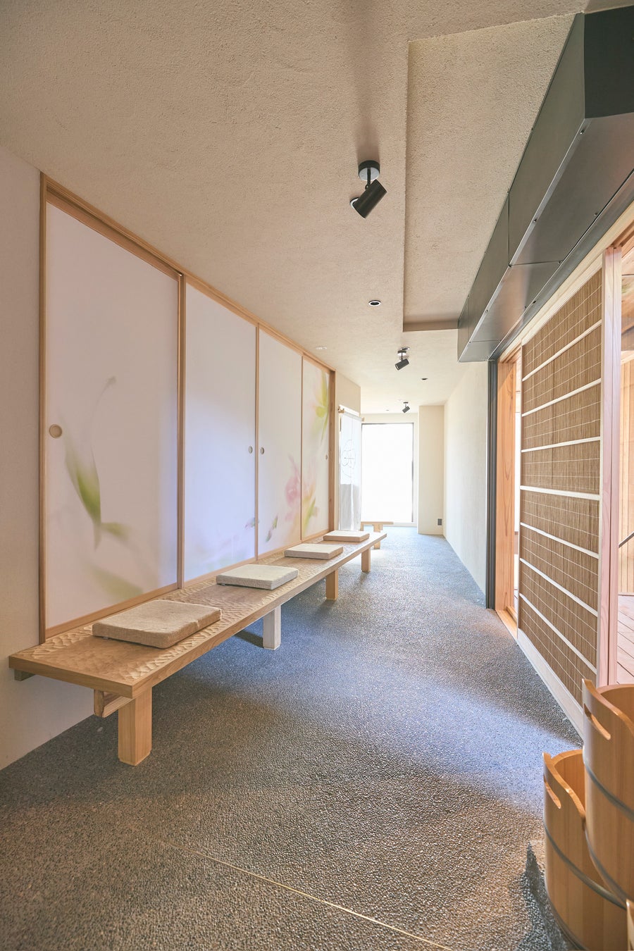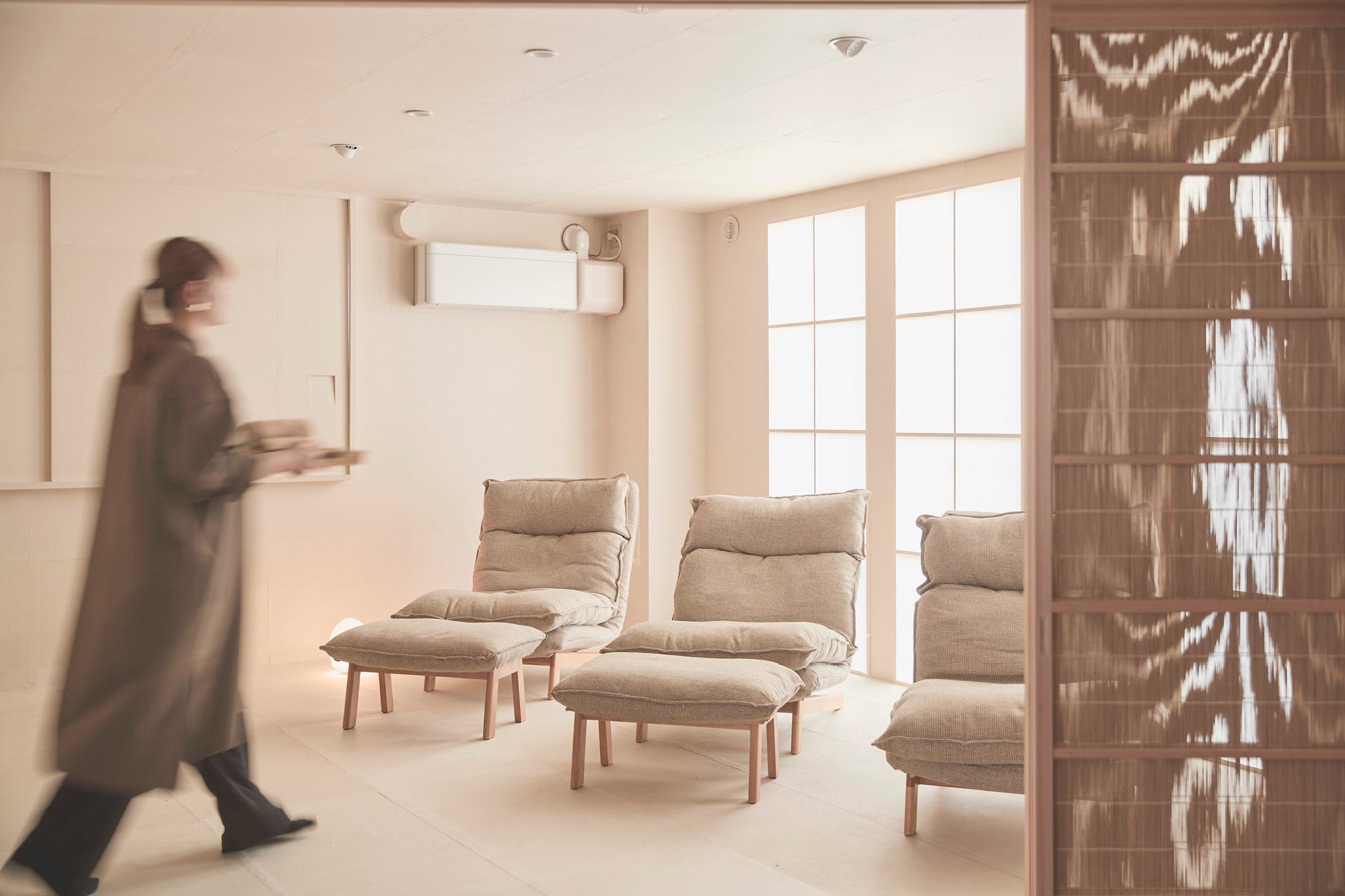 今回オープンした鎌倉別邸では、日本家屋をイメージした縁側に座りながら、ほっこりした気分で足湯をお楽しみいただけます。足湯には、おくどさん(京都弁で「かまど」の意味)から沸かしたお湯を取って使います。マッサージは、天井、壁、床を和紙で覆われた、繭をイメージしたお部屋で行います。すだれを下ろした薄暗い空間で、お香の香りや癒しの音楽で心も体もリラックスしていただけます。