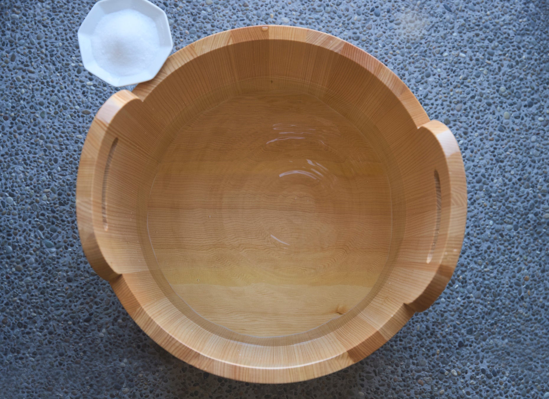 塩を入れ浄化や保温効果のある足湯。日本らしいとインバウンド客に人気が高いメニュー。