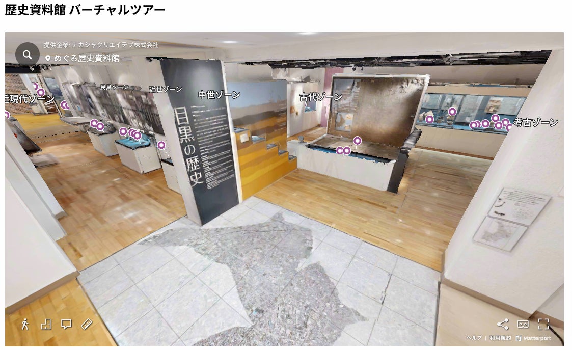 めぐろ歴史資料館をデジタル空間で再現しました。360°のどの方向からも館内をご覧になれます。