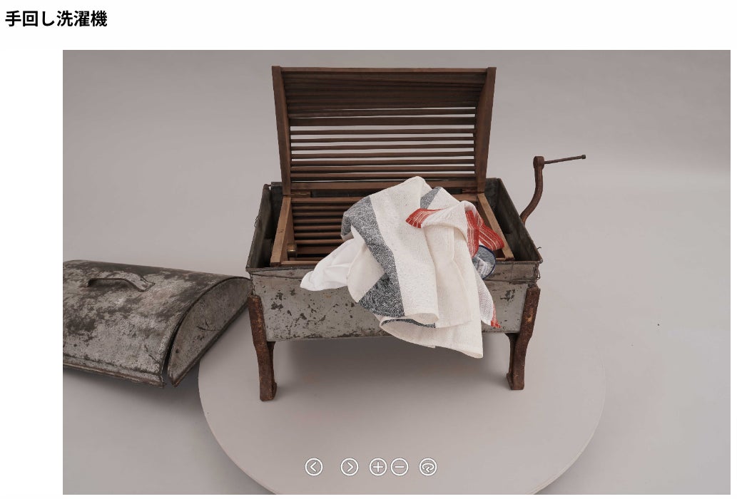 その1:objectVR(オブジェクトブイアール) 手回し洗濯機のような民具は画像をつなぎ合わせたパラパラ漫画形式で、使用方法がわかるような紹介をしています。